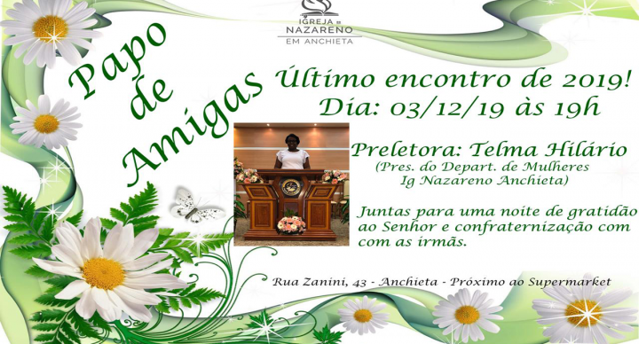 Preletora: Telma Hilário ( Presidente do Departamento de mulheres da Igreja do Nazareno em Anchieta )