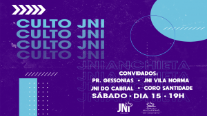 Dia: 15/06/19 Horário: 19H Convidados: JNI do Cabral, JNI Vila Norma Preletor: Pr. Gessonias