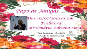 Data: 02/07/19 Horário: Às 19H Preletora: Missionária Adriana Lima