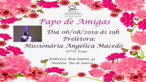Dia: 06/08/19 Horário: Às 19H Preletora: Angélica Macedo ( ADVEC Bangu )