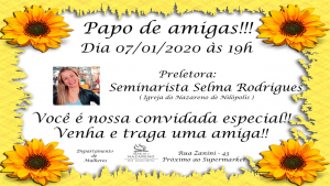 Dia: 07/01/20 Horário: Às 19H Preletora: Seminarista Selma Rodrigues