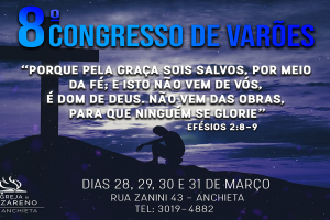 "Porque pela graça sois salvos, por meio da fé; e isto não vem de vós, é dom de Deus. Não vem das obras, para que ninguém se glorie" Efésios 2:8-9 Dias : 28, 29, 30 e 31 de Março