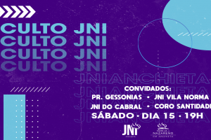 Dia: 15/06/19 Horário: 19H Convidados: JNI do Cabral, JNI Vila Norma Preletor: Pr. Gessonias