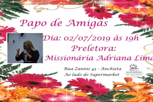 Data: 02/07/19 Horário: Às 19H Preletora: Missionária Adriana Lima
