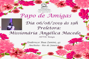 Dia: 06/08/19 Horário: Às 19H Preletora: Angélica Macedo ( ADVEC Bangu )